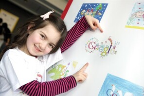 Six-year-old schoolgirl wins national doodling competition to have her drawing featured on internet search engine’s Irish homepage.