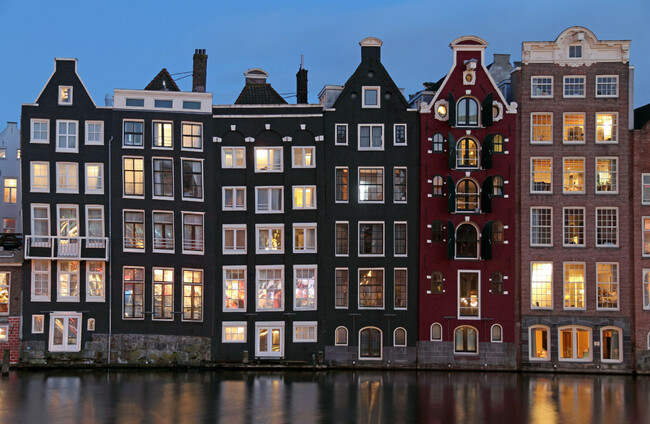 The Damrak Canal Houses of Amsterdam. Alamy Stock Photo
