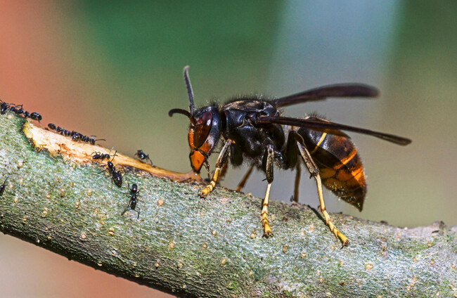 The Asian hornet, also known as the yellow-legged hornet, is indigenous to Southeast Asia and is an invasive species in most of Europe.
