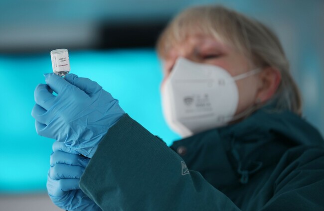 An NHS nurse prepares a dose of the Oxford-AstraZeneca Covid-19 vaccine
