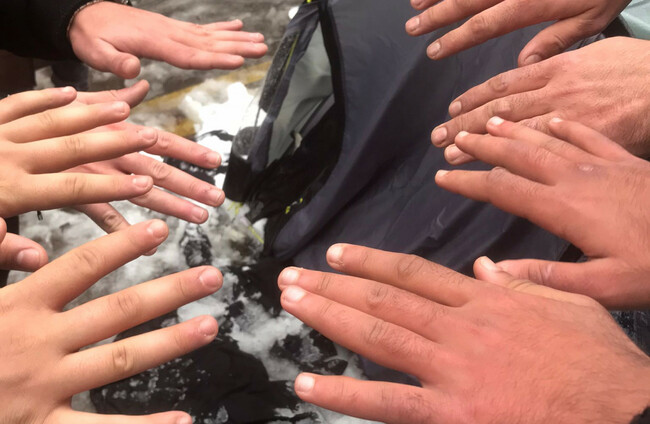They search for an English speaker amongst the group who can explain what they have been through, two young men called Zooz and Mohmmad step forward.