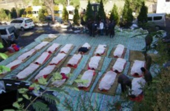 Families grieve over the bodies of 20 of the dead miners recovered from the mine in Yunnan. Yang Yingrong/ColorChinaPhoto/AP