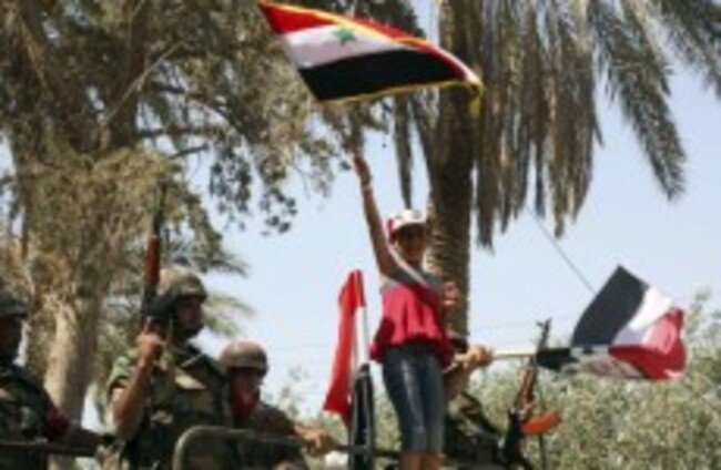 Image of a young girl carrying a Syrian flag as troops withdraw from Deir el-Zour earlier this week. The photo was taken during a Government organised media tour. Bassem Tellawi/AP/Press Association Images