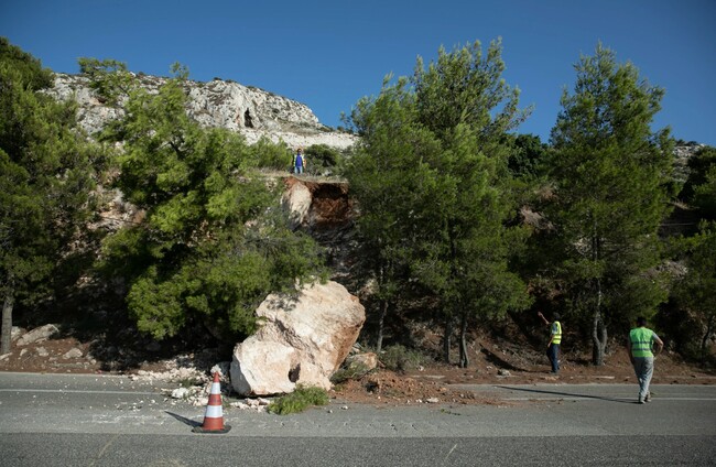 Fallen rocks block part of a road following an earthquake in Athens, Greece, on July 19. Xinhua News Agency/PA Images