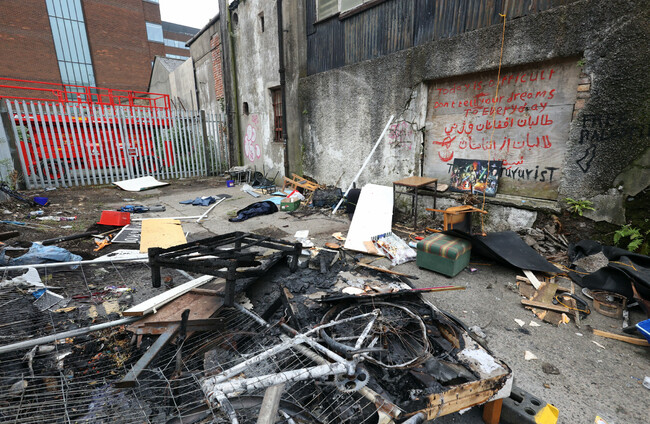 The scene in a lane just off Sandwith Street Upper in the wake of last May's tent burning. Sam Boal