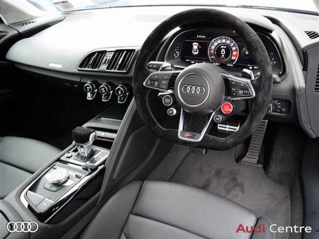 Styling wise, this car is finished in all black and rolls on 20-inch ’10-spoke Y design’ alloy wheels and comes with a full leather interior and exclusive R8 3-spoke, flat bottomed, multi-functional, performance leather steering wheel.