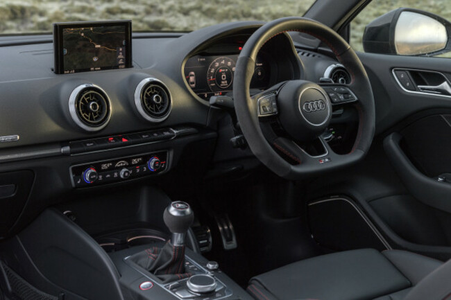 Aside from those numbers that ensure your head is firmly planted to the sporty headrest, the RS 3 gets some tasteful interior upgrades. The sports steering wheel is swathed in Alcantara and feels gorgeous to the touch and the sports seats look the business but they also hold you in place through the bends. Audi has deservedly earned a reputation for doing interiors very well, and this car is no exception. (Then again, with a starting price of close to €70,000, I’d expect it to be nice inside.)