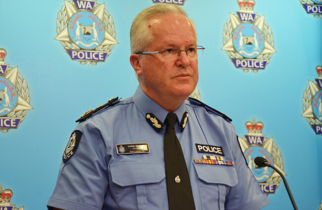 Police Commissioner Chris Dawson addresses the media in Perth today. AAP/PA Images