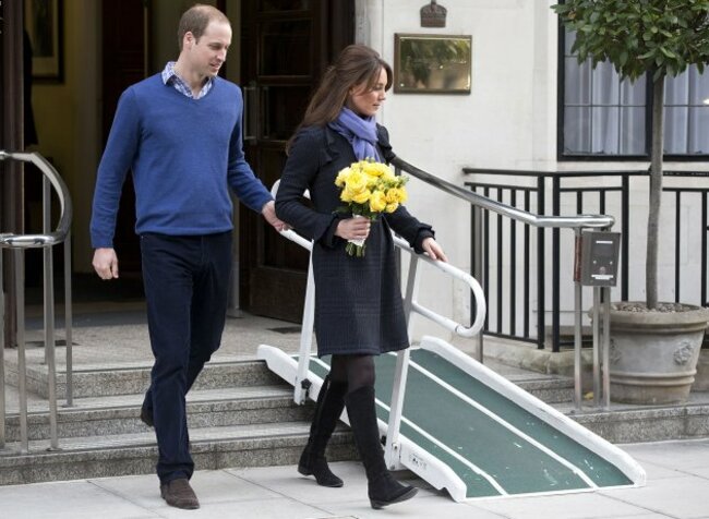 Britain’s Prince William and his wife Kate leaves the King Edward VII hospital in central London on 6 December 2012. (AP Photo/Alastair Grant, File)