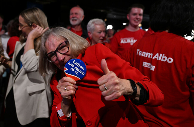 Labour supporters celebrate during a Federal election reception for Labor's Anthony Albanese in New South Wales, Alamy Stock Photo