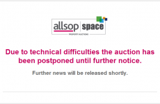 Ireland's first-ever online property auction has been suspended because the website crashed