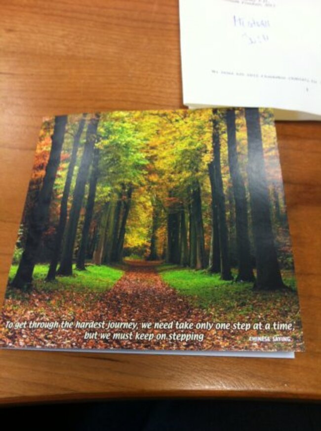 And he was given a poignant reminder of that by Conor, who sent him this card with the following message: