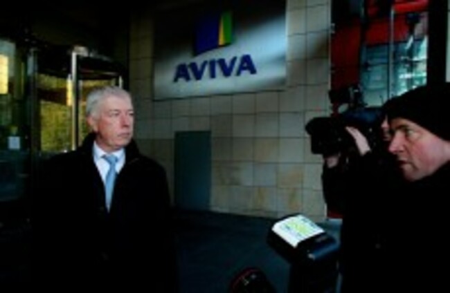 UNITE's Brian Gallagher outside Aviva's offices in Dublin after the 950 jobs cuts were announced this morning. Julien Behal/PA Wire
