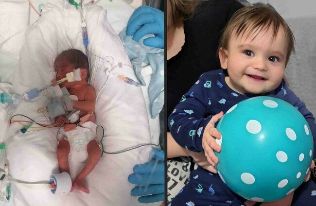 Rohan Morris, from Ammanford in Wales, weighed just 1lb 8oz – around 860g – when he was born on 22 January last year.