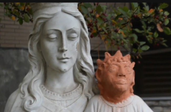Ontario artist Heather Wise has unintentionally caused controversy by decking a statue of the baby Jesus with a quasi-demonic red head made of clay.