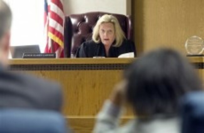 Lake County Juvenile Court Judge Karen Lawson, back, tells the 11-year-old girl her rights. Apexchange