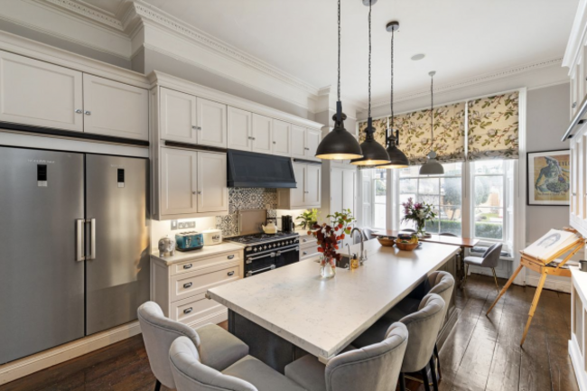 Once you step inside, you are greeted by an exquisite entrance hallway adorned with wainscoting, a decorative fanlight and intricate ceiling cornicing. The grand proportions continue throughout, with elegant reception rooms featuring original fireplaces, ornate plasterwork and expansive sash windows that flood the space with natural light.