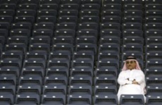A spectator watches from an empty stand during the third free practice ahead of the Bahrain Formula One Grand Prix at the Formula One Bahrain International Circuit in Sakhir Hasan Jamali/AP/Press Association Images