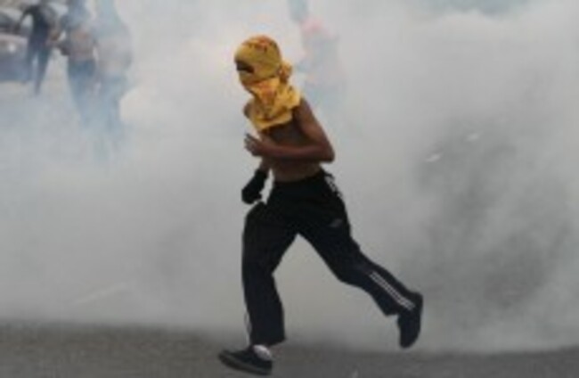 Anti-government protesters run through tear gas fired by riot police Friday, April 20, 2012 AP Photo/Hasan Jamali