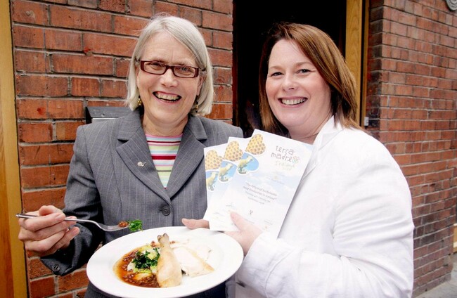 Darina Allen with Northern Ireland Agriculture and Rural Development Minister Michelle Gildernew. PA Archive/PA Images