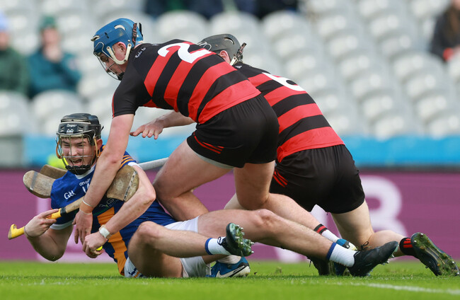 Loughrea's Daren Shaughnesy with Ballygunner's Aaron O'Neill and Philip Mahony. James Crombie/INPHO