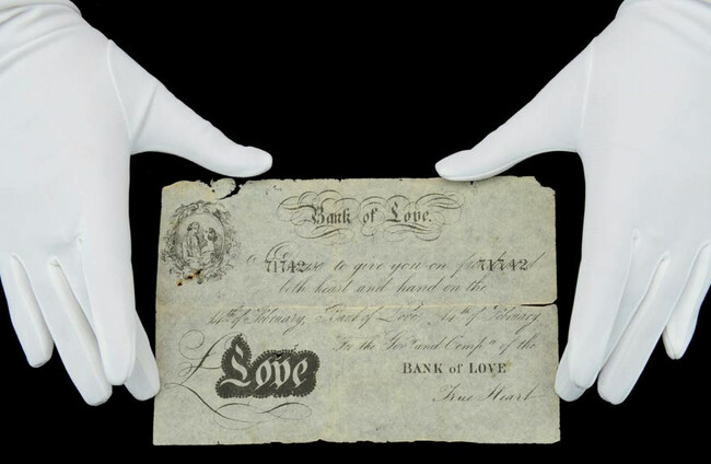 Valentine’s Day ‘banknotes’ from 19th century to go under the hammer