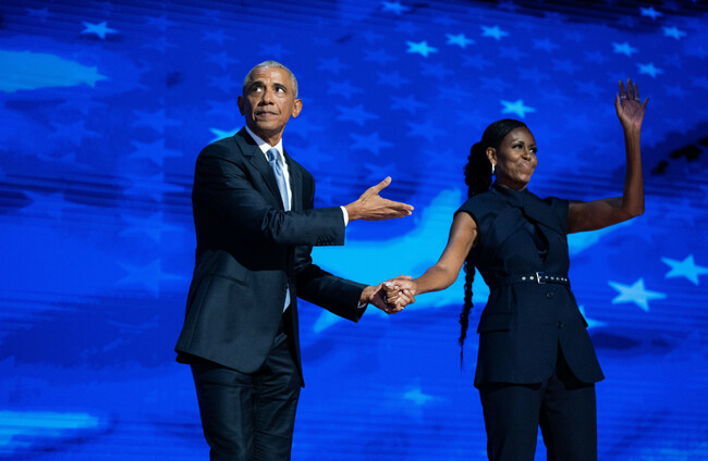 Former US President Barack Obama and former first lady Michelle Obama at the Democratic National Convention last year Alamy