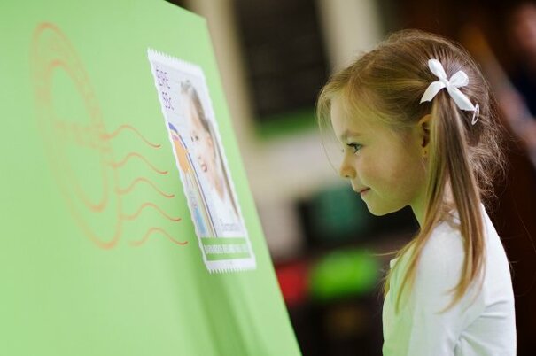 Designed by Zinc Design, the 55 cent stamp features colourful elements from the paintings of young children attending some of Barnardos 42 project centres.