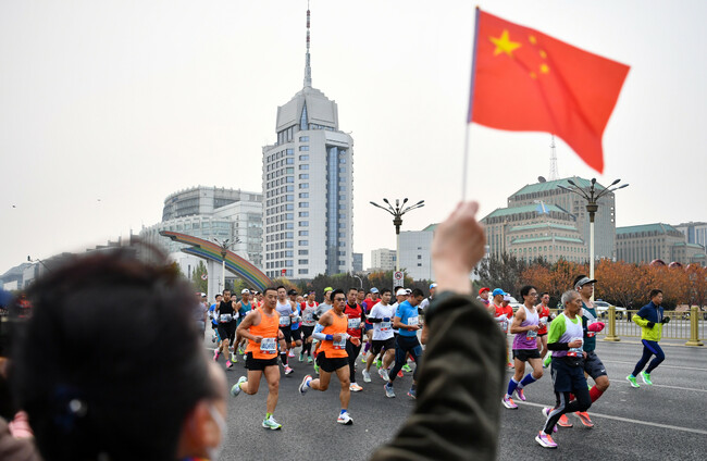 In contrast, the mood was upbeat at the Beijing Marathon.