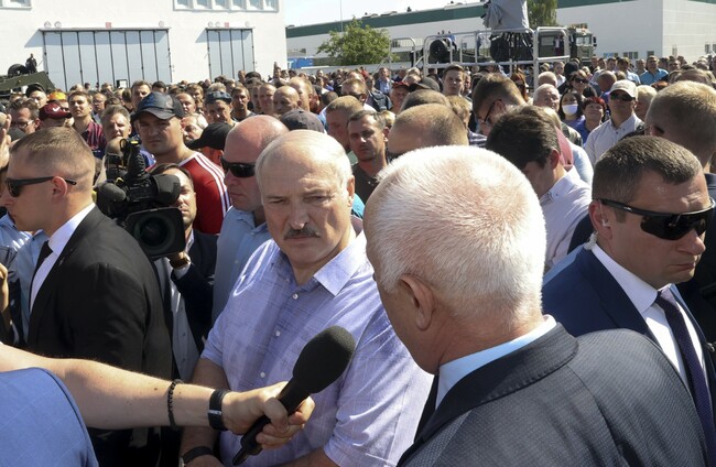 As he spoke, over 5,000 striking workers from the Minsk Tractor Works plant marched down the streets, demanding that Lukashenko cede his post to Sviatlana Tsikhanouskaya, the leading opposition candidate.