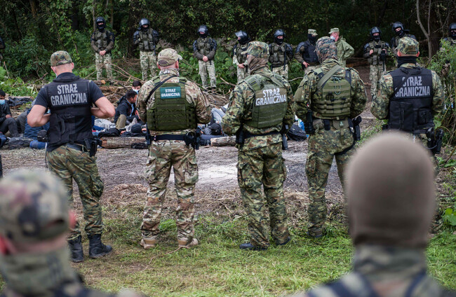 Police said that 50 migrants had crossed the heavily guarded EU and NATO border near the village of Starzyna “by force” today.