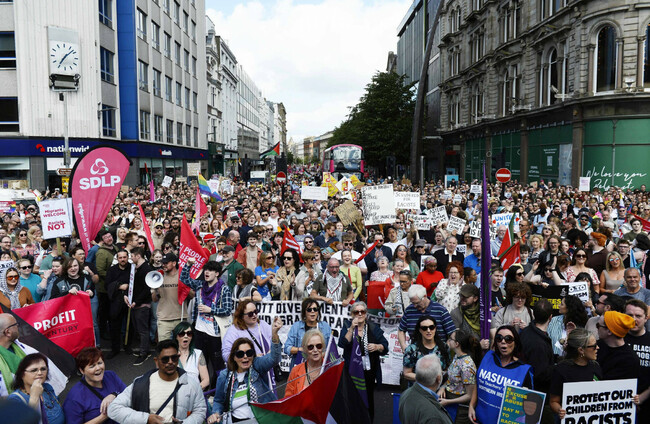 People Before Profit MLA Gerry Carroll said, “15,000 people are here to say no to racism and the poison of fascism and that migrants are welcome.
