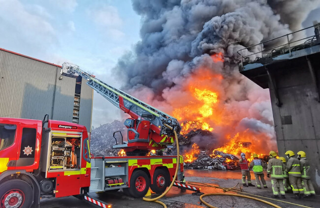 The fire broke out at a scrap metal recycling centre in Belfast Harbour yesterday afternoon.