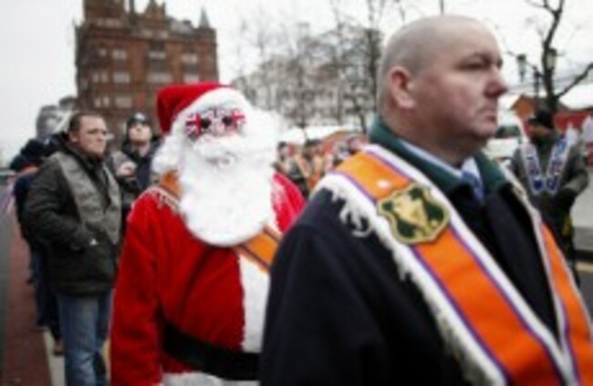 An earlier parade — organised to mark one year since Belfast City Council’s vote restricting the number of days the union flag could be flown at City Hall — passed off peacefully, with around 1,000 people attending.