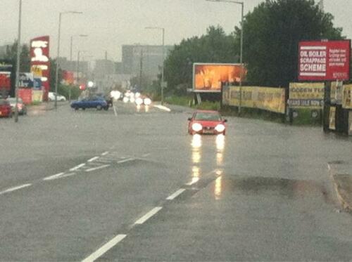 The heavens opened this evening causing flash flooding in areas including Andersonstown, Twinbrook, Fanaghy, Cutters Wharf and Boucher Road.