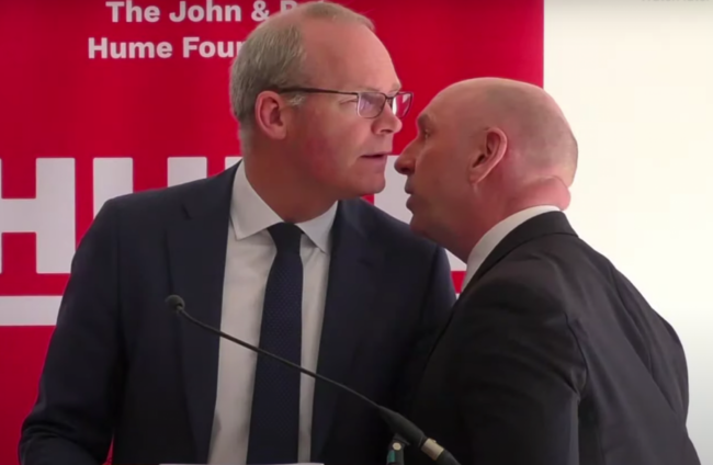 Simon Coveney being informed that he needed to leave the event on Friday Hume Foundation