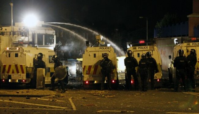 Police were attacked with fireworks, petrol bombs, masonry and lasers. A water cannon was deployed by police in the areas of Denmark Street and Antrim Road in response to the disorder. No AEPs were discharged, police said.