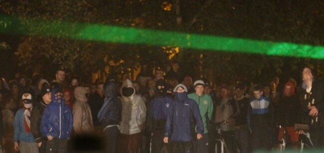 When police arrived on the scene, some people within the crowd had masked their face and police observed masonry being broken up by a number of individuals.