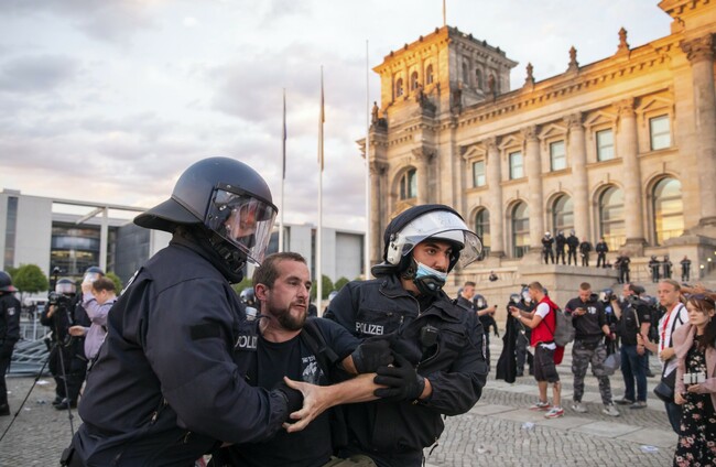 THE GERMAN GOVERNMENT slammed the “unacceptable” behaviour of protesters during a mass rally against coronavirus restrictions in which hundreds were arrested and some attempted to storm the Reichstag parliament building.