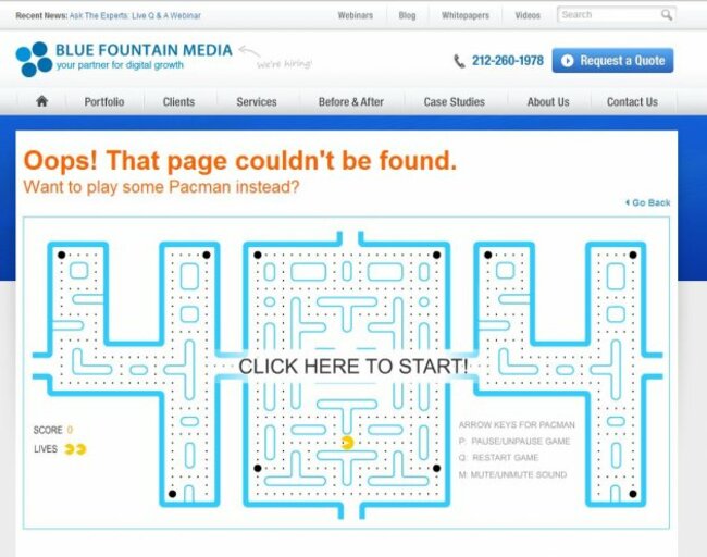 This digital media agency in the US lets you play some Pacman inside the 404.