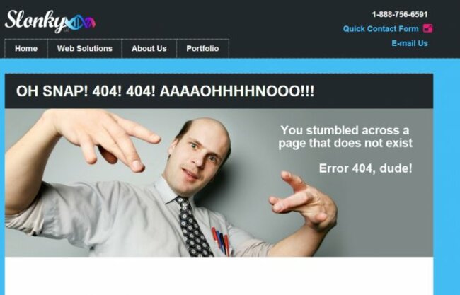 If you land on the 404 page of restaurant start-up app Nosh, you get an actual video of some guys killing a webpage.  That’s a lot of work.