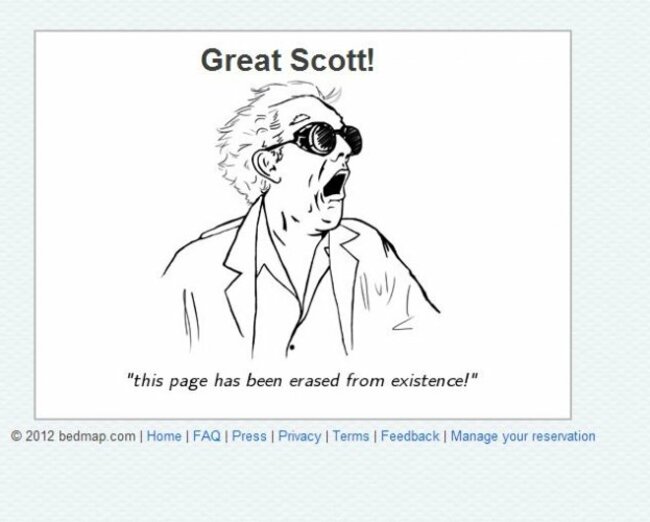 Finally, BedMap goes for a classic, using a Back to the Future reference for its error page.