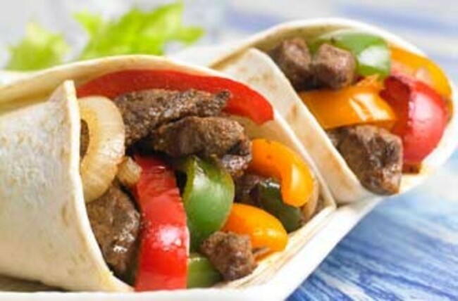 Saute all the veg and the beef together, season to taste and wrap it up in a tortilla. Couldn’t be simpler.