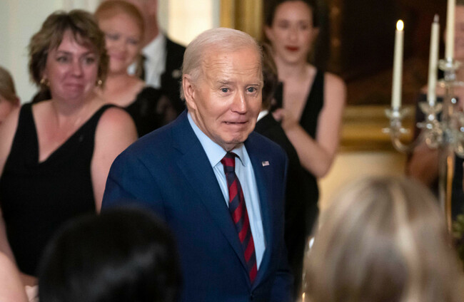 Joe Biden greets people during a State Dinner at the White House in Washington, Thursday, 2 May, 2024. Alamy Stock Photo