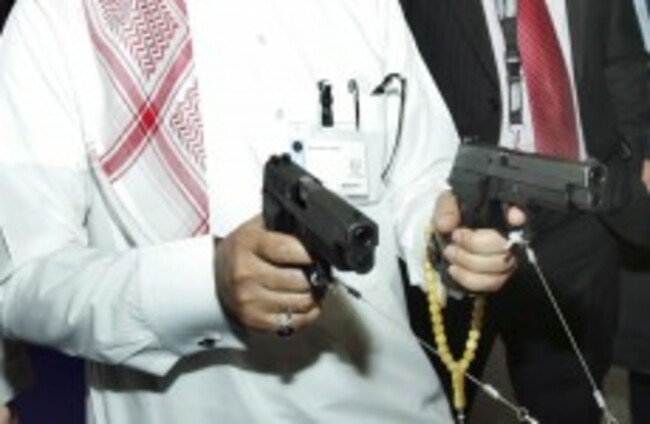 A Saudi visitor inspects guns at a defence exhibition in Jordan Nader Daoud/AP/Press Association Images