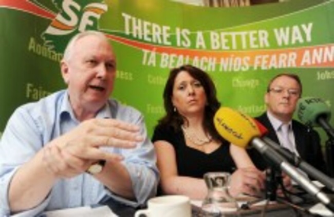 Unite's Jimmy Kelly, single parents activist Louise Bayliss and Sinn Féin's Brian Stanley at a press conference today. Laura Hutton/Photocall Ireland