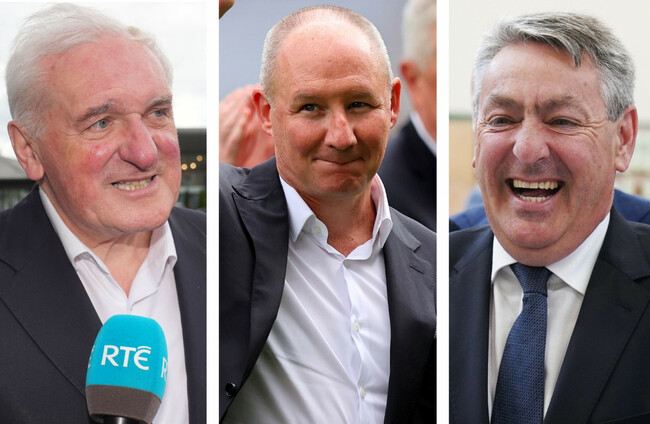 (L-R) Ex-Taoiseach Bertie Ahern, former Dublin GAA boss Jim Gavin and MEP Billy Kelleher are in the mix. Alamy