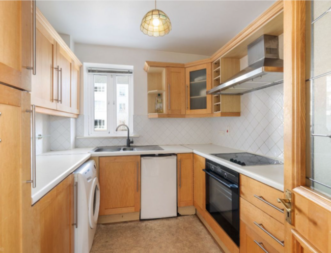 Adjoining the living room is a well-appointed kitchen, fitted with an excellent range of wall and floor cabinetry. Designed with practicality in mind, it offers generous storage and ample workspace, making it equally suited to everyday living and entertaining.