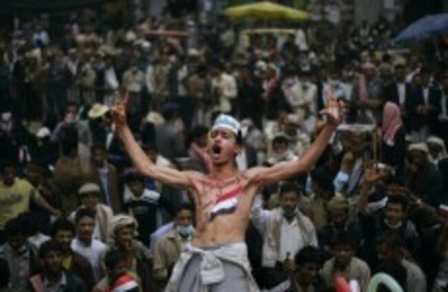An anti-government protestor reacts during a demonstration demanding the resignation of Yemeni President Ali Abdullah Saleh, in Sana'a, Yemen on Monday Muhammed Muheisen/AP/Press Association Images