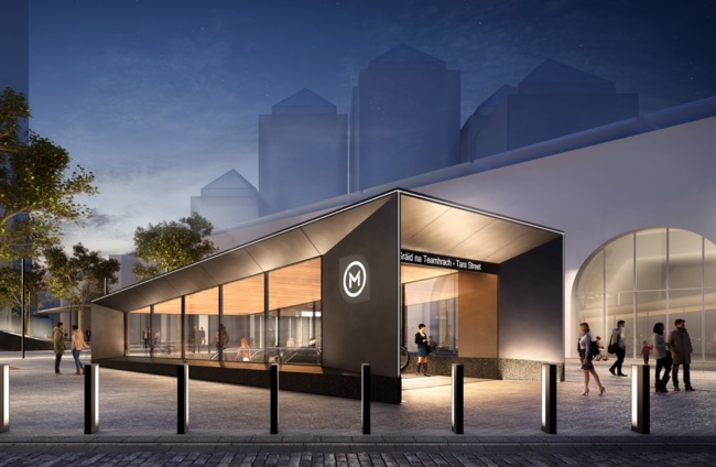Artist's illustration of one of the Metrolink stations at Tara Street in Dublin city centre. Metrolink
